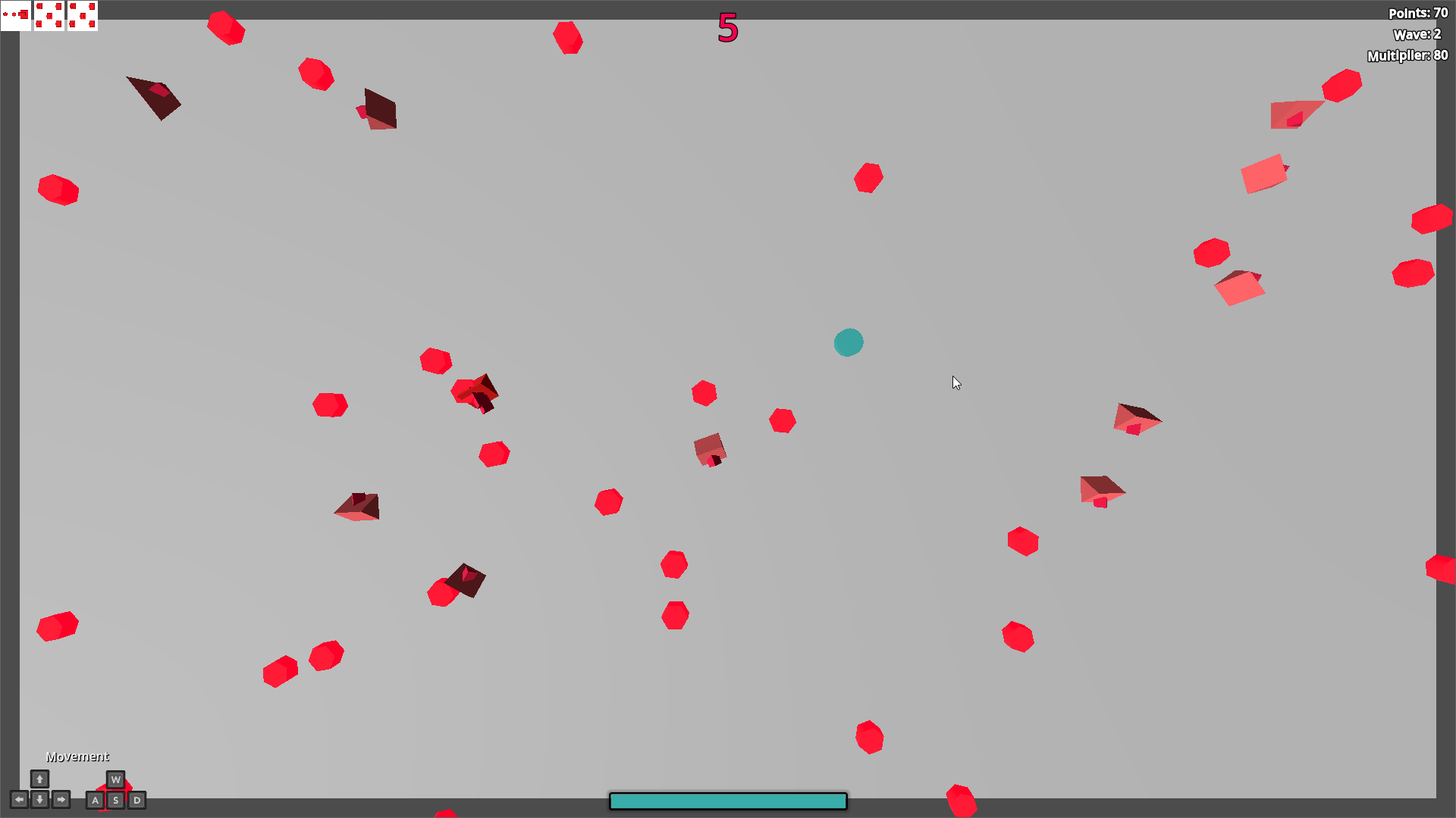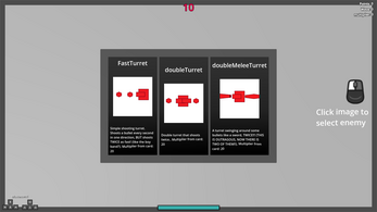 WASD or arrow keys to move. left mouse button on images to select. Don't get hit by red bullets.